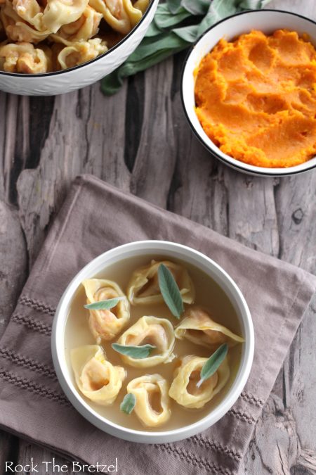 Tortellini au potiron, bouillon de poule maison